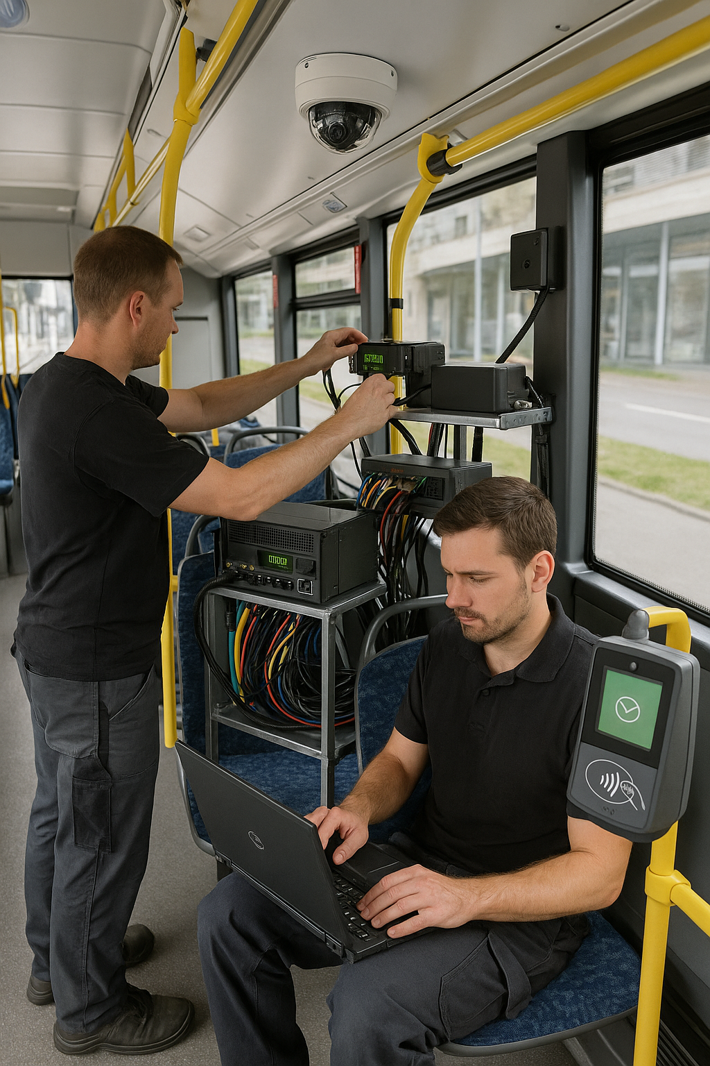 En GTI contamos con sólida experiencia en la implementación de dispositivos tecnológicos embarcados, incluyendo computadores a bordo integrados con IVU Fleet, GPS, cámaras de vigilancia, torniquetes y otros sistemas clave para la operación del transporte urbano. Nuestro equipo técnico brinda soporte especializado para asegurar el correcto funcionamiento de estos dispositivos, maximizando su disponibilidad y continuidad operativa.